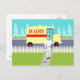 If you have a thirst for a mid century modern design, this Retro Small Town Milkman Postcard is for you! The 1960's style, minimalist art design features a dedicated, milkman making his morning rounds. The blonde man is wearing milky white pants, shirt and hat with a black bow tie, belt and shoes. This delivery man of calcium and Vitamin D is walking up a front sidewalk, carrying a family's weekly supply of wholesome, fresh milk in glass bottles. The morning newspaper is still on the sidewalk. Don't worry. Only good news is allowed in this town! The sidewalk is surrounded by the type of green lawn only found in small towns and suburbia. There is also a white, picket fence. In the street, we see the milkman's sweet ride! It's a creamy yellow, milk truck with a red stripe on the side and red lettering that says, "DAIRY". On the opposite side of the street, we see an aqua sky and the light blue silhouettes of cedar trees. This kitschy cartoon looks like a scene out of an old television sitcom. Bring on the yellow cake with chocolate frosting--the official cake of all television housewives and their fortunate families! Building strong bones never tasted so good!