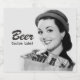 A humourous retro nineteen-fifties smiling lady holding a bag of beer custom beer bottle label (4" x 3.5").