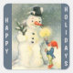 Retro Snowman and Elf Christmas Square Sticker