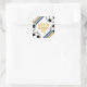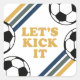 Retro Soccer Birthday stickers with yellow, green and navy blue stripes.