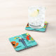 Honey, I'm home! These Retro Space Age Cartoon Couple Cork Coasters will have you feeling envious of the cartoon couple on cork coasters! The design features a turquoise background with teal bricks and an olive green, cone fireplace. A sleek, black cat is sitting on a sleek orange chair. There is a teal, starburst wall clock and a two-tier pendant lamp in shades of yellow, blue and black. Front and centre, there is a distinguished, martini-swilling businessman in a blue suit and orange tie. To his side, his blonde bombshell of a trophy wife is wearing a red wiggle dress and holding a tray of martinis. Va-va-va-voom!