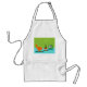 It is said that dogs have owners and cats have staff. The feline on this Retro Space Age Kitty Apron couldn't agree more! The 1960's style, minimalist art design features a sleek, black cat in a mid century modern living room. The sophisticated room prominently features a green, stone wall. The carpet is aqua with teal shadows. The furnishings of the room include a yellow, sputnik light figure, an orange lounge chair with matching footstool and a green television with rabbit ears. The lucky black cat can be seen perched on the footstool in front of the television. Its favourite show is on! On the television screen, we can see a black and white, classic television family solving all of life's problems in a half hour show. This design is purrrfect, if we do say so ourselves.