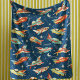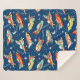 Retro Space Rocket Cars Blue Personalised Name Sherpa Blanket