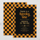 Retro Spooky One Checkered Orange 1st Birthday Invitation