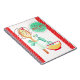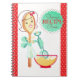 Super cute retro style wooden spoon girl wearing an apron, mixing batter with an egg beater in mint and red on this little personal cookbook or recipe notebook for your favourite baking and cooking recipes.