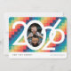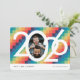 A minimalist and simple multi coloured photo card, with a retro colourful square pattern. Easily customisable with your family picture, and custom greeting message.