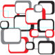 A vintage inspired design done in red, grey and black retro squares on a white background