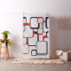 Retro Squares Geometric Pattern Red Grey Black Fabric