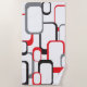 A fun vintage inspired design of retro squares done in red, black and grey against a white background