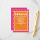 Retro Squiggle Wavy Curve Pink Orange Wedding Details Card