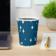 Let it sparkle! Sparkling starburst starry design, featuring white sparkle stars on a festive holiday dark navy blue background. Sparkling retro minimalist pattern.