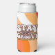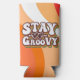 A Colourful Foam Can Cooler For Seltzer, Cans Or Bottles Designed In A Retro Stay Groovy Theme