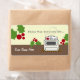 A label featuring an illustration of a retro stove with a red teapot sitting on the front left burner. Stove sits on a festive red and green floor. Background at bottom is brown. Holly surrounds design. Text at top reads "From The Kitchen Of..." Personalise with your name at bottom. Look for matching items such as apron, recipe binder, recipe letterhead, and recipe cards in the "For Your Kitchen" section of Jill's Paperie.