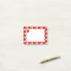 Stickies with a background pattern of red strawberries, a red frame and a trio of strawberries in the corner.