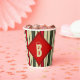 Custom-made paper cups with cool retro style graphics personalised with your monogram are perfect for your Christmas parties and family get-togethers. A 1950's inspired pattern in warm, trendy colours of aurora red, ivy green, and cream. Substantial discount when bought in bulk quantities.