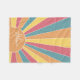 A colourful, retro stripe sunrise design with a pastel colours. The stripes are pastels - red, orange, yellow and a light blue. Add your name or monogram to make this a personal blanket that will stand out amongst your friends. The name is a trendy script in white.