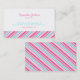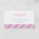 Customisable business card / calling card template with retro pattern of magenta pink and teal blue stripes.