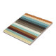 This design features horizontal stripes in various vintage colours, such as brown, orange, beige, blue, black, grey and white. It really conjures up the style of the mid 20th century.