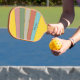 Retro Stripes in Pastel Colours on Yellow Pickleball Paddle