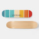 Colourful Retro stripes, stylish, trendy, cute custom name monogram skateboard.