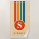 Retro Stripes Orange Monogram Name Personalised Beach Towel
