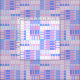 An abstract pattern featuring geometric stripes in colour blocks of blue and pink.