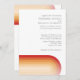 A modern invitation with sunset colours and a retro stripe curved arch. The semi-casual wording can be changed from the parents invitation to the bride and groom. A place for a wedding website qr code is included on the back of the casual invitation.