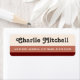 Return address labels with your name in a fun, retro font and the address below. Cream coloured, terracotta and brown stripes. Fonts and colours can be customised with the design tool.