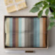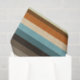 This design features horizontal stripes in various vintage colours, such as brown, orange, beige, blue, black, grey and white. It really conjures up the style of the mid 20th century.