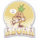 Grunge retro summer illustration with "Aloha" text design and cute pineapple playing ukulele at sunset decoration for summer lovers