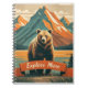 Retro-style bear cartoon and mountain range notebook