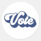 This election day sticker features the text "vote" in a large blue retro-style font. Also available in red in our shop!