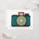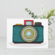 Cameras from the olden days had a great look to them and this design is a throw back to then of a retro style camera. The body of the camera is most;y green with a viewfinder on top and the shutter button to the right. This retro style camera design looks great on these invitations