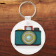 Cameras from the olden days had a great look to them and this design is a throw back to then of a retro style camera. The body of the camera is most;y green with a viewfinder on top and the shutter button to the right. This retro style camera design looks great on this keychain. Perfect for yourself or as a gift