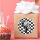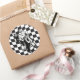 Retro style check scooter boy and girl classic round sticker