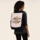 Personalised backpack with a row of delicious looking cupcakes with swirls and cherries and yummy frosting. Illustrated in a classic retro style. Colours include retro green, red, blue and cream.