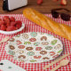 Paper plates with a cute pattern featuring doughnuts tumbling all around. Pink, green, brown and cream colours really give this design a cool retro feel.