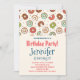 Retro Style Cute Doughnut Pattern Birthday Party Invitation