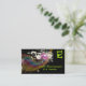 Retro style business card for dj's, musicians and other music related businesses. This exciting musical themed image is a funky retro design of a pastel coloured rainbow with dark multicolored music notes on pieces of sheet music exploding outward. Butterflies and paint splatters seem to burst forth from the centre. The background is an intense show stopping lime green.