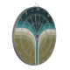 Retro style double arches geometrical pattern illustration with beige, green, blue, navy blue and turquoise stripes decoration