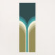 Retro style double arches geometrical pattern illustration with beige, green, blue, navy blue and turquoise stripes decoration