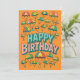 A playful and retro-style birthday design featuring colourful parachutes floating across a bold orange background. At the centre, large teal and pink block letters spell out “Happy Birthday” in a fun, eye-catching font. The parachutes, in shades of yellow, red, green, and teal, create a lively sense of movement and joy, making this artwork perfect for greeting cards, posters, or party-themed decorations with a vintage flair.