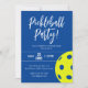 Retro Style Neon Blue Themed Pickleball Birthday Invitation