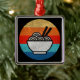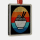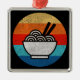 Retro style ramen illustration with noodles and chopsticks on a colourful retro style sunset background in yellow, orange, red, turquoise and blue colours