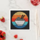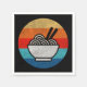 Retro style ramen illustration with noodles and chopsticks on a colourful retro style sunset background in yellow, orange, red, turquoise and blue colours