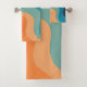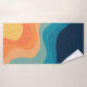Retro style waves geometrical pattern illustration with yellow, orange, blue, navy blue and turquoise stripes decoration