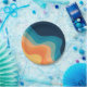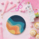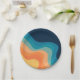 Retro style waves geometrical pattern illustration with yellow, orange, blue, navy blue and turquoise stripes decoration