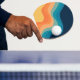 Retro style waves geometrical pattern illustration with yellow, orange, blue, navy blue and turquoise stripes decoration