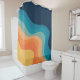 Retro style waves geometrical pattern illustration with yellow, orange, blue, navy blue and turquoise stripes decoration