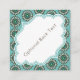 These stylish, customisable teal square business cards have a retro stylised teal and brown flower pattern background. The text, in matching colours, is in an arabesque style nameplate area on the business cards. There is a removable text plate on the back of the cards to, over the teal and brown flower graphic pattern. So, you can remove that text area if you want to.
